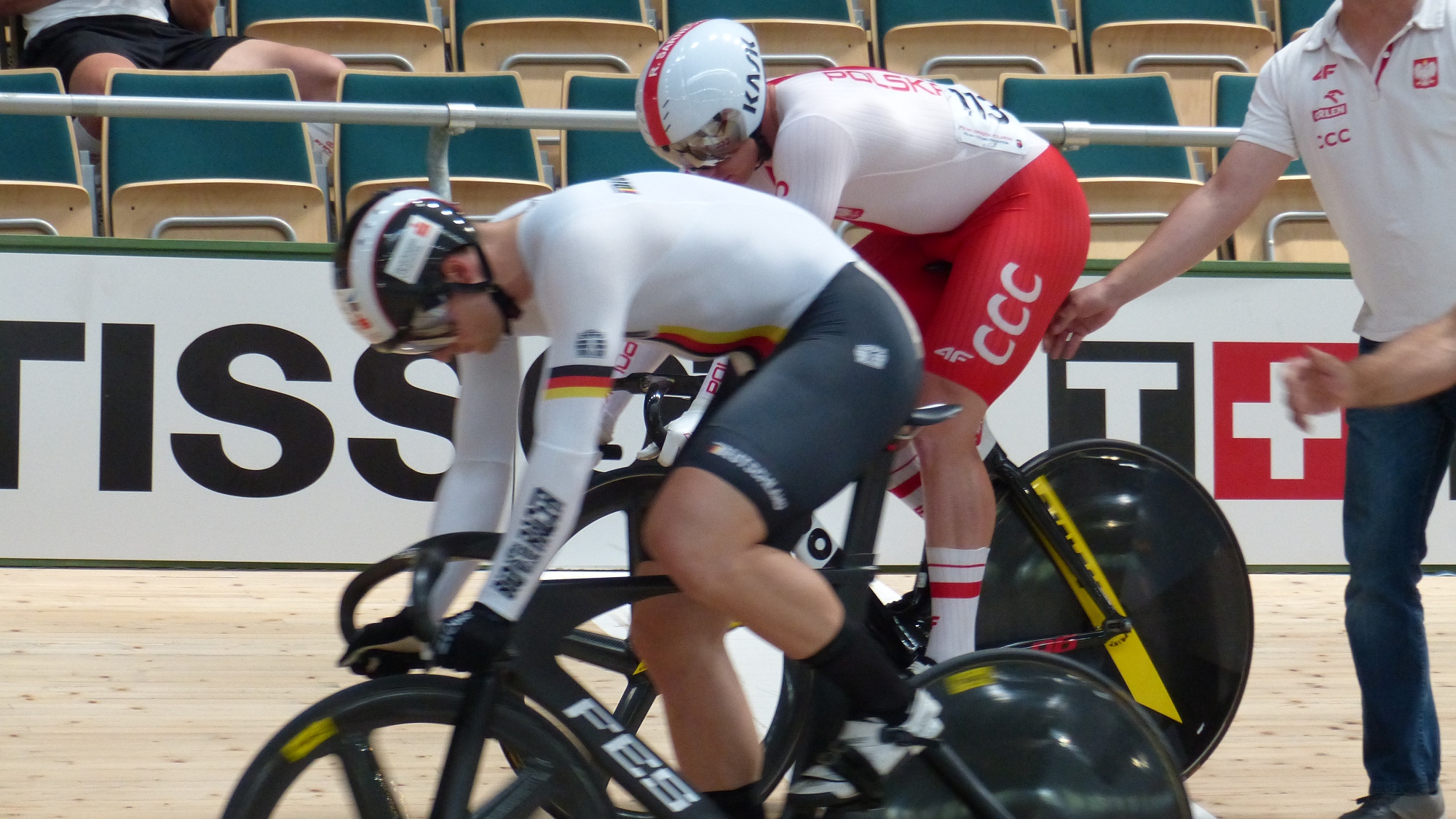Sprint wygrał Niemiec Botticher S. wyraźnie liderując całej stawce rywali. Do strefy walki o medale dotarł Rafał Sarnecki zajmując ostatecznie 4 miejsce. W keirinie pierwszy był Carlin J. (GBR). Do rozgrywki finałowej dotarł młodzieżowiec Mateusz Lipa zajmując w renomowanej stawce 6 miejsce.