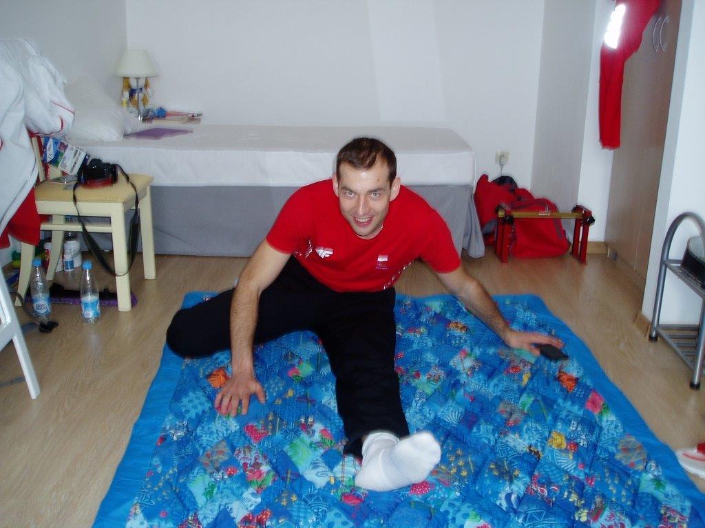 Mistrz olimpijski podczas stretchingu