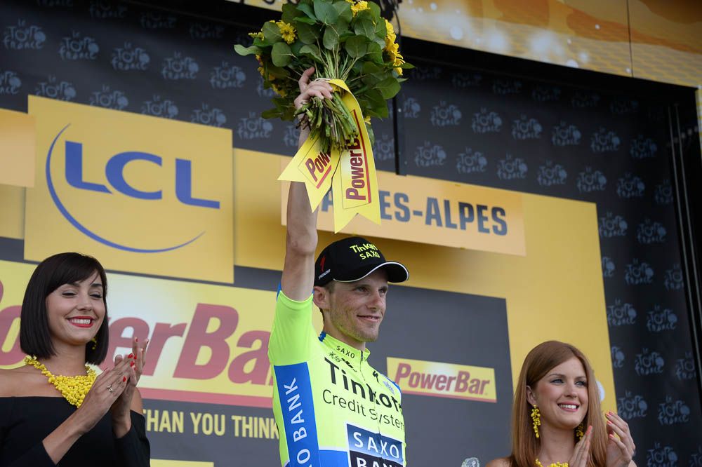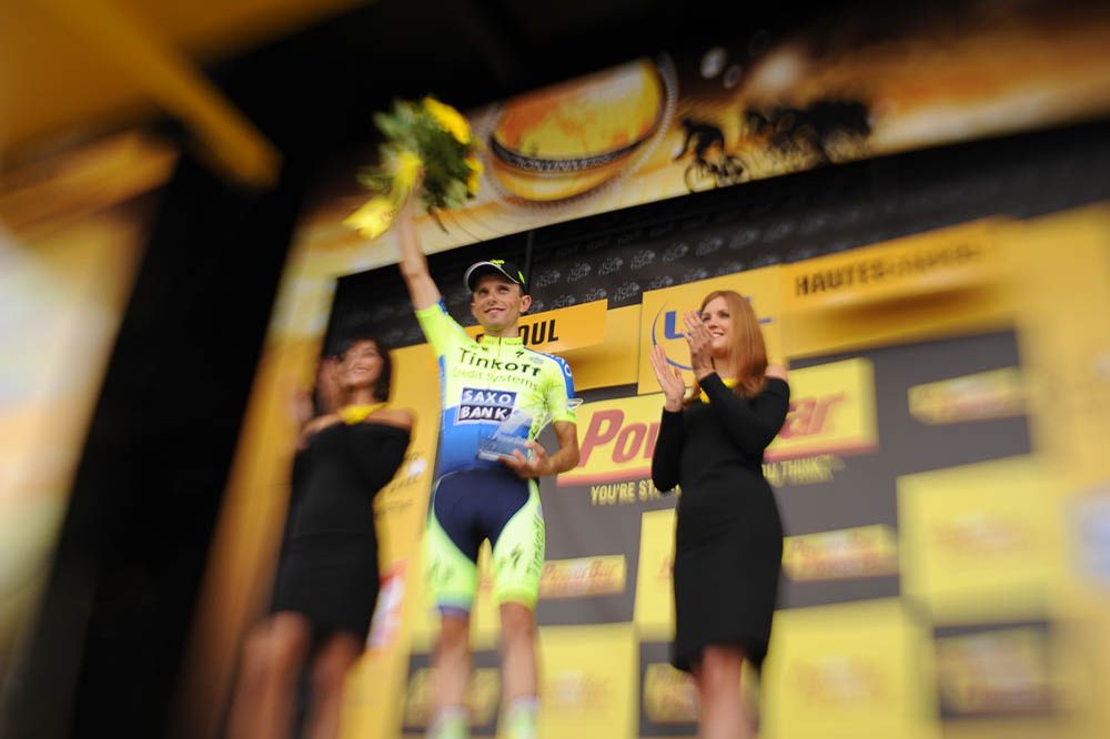 Rafał Majka na podium za zwycięstwo na XIV etapie