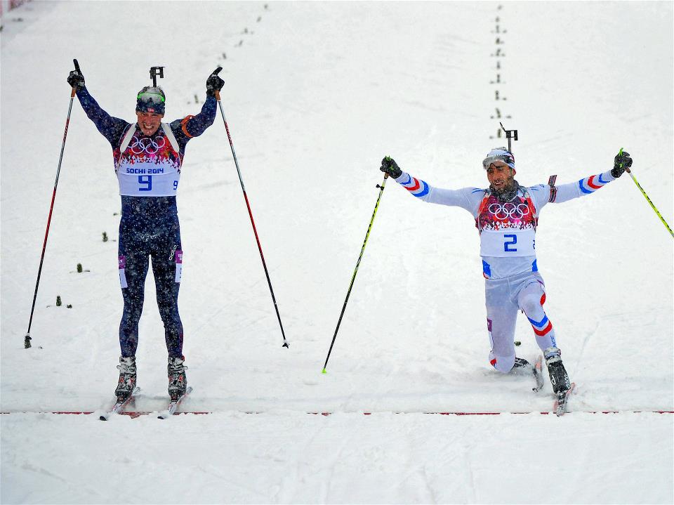 Nie udało się Martinowi Fourcade powtórzyć sukcesu Darii Domraczewej. Francuski biatlonista nie wywalczył trzeciego złotego. Był drugi, przegrywając złoto o kilka centymetrów z Emilem Hegle Svendsenem. Norweg, będąc pewnym sukcesu, ostatnie trzy metry jechał z rękoma w górze podczas, gdy szalał za nim Fourcade i wyrzucił nogę do przodu, żeby prześcignąć rywala. Nie udało się.